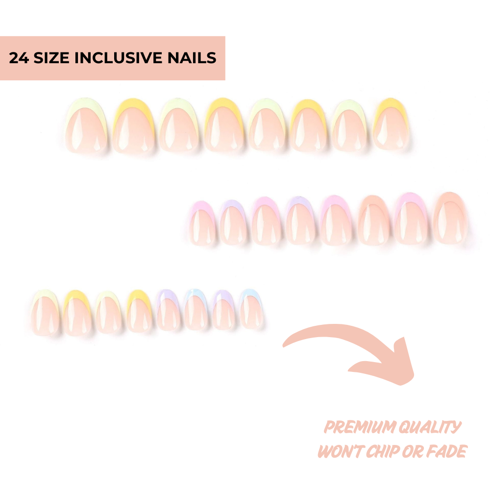 Das Tolle an unseren Nägeln ist, dass sie in vielen verschiedenen Größen erhältlich sind. Unsere Sets mit 24 Nägeln enthalten 12 verschiedene Größen und unsere Sets mit 30 Nägeln enthalten 15 verschiedene Größen. Bitte beachten Sie, dass Sie alle Nägel auch so formen können, dass sie perfekt passen. Außerdem kann die Breite unserer Nägel zwischen 6,3 mm und 14,02 mm variieren.