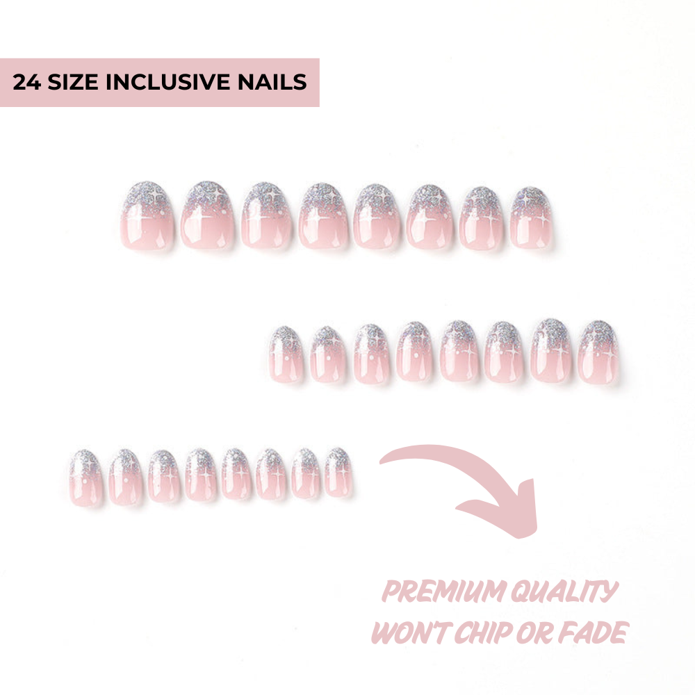 - Anbringen des Press-On-Nagels: Drücke den Press-On-Nagel von der Nagelhaut in Richtung Spitze auf das Klebepad, damit er sicher sitzt. 💖👑