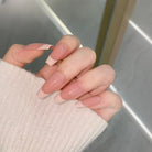 5. Press the Press-on Nail onto the sticky tad, starting from the cuticle and working towards the tip.