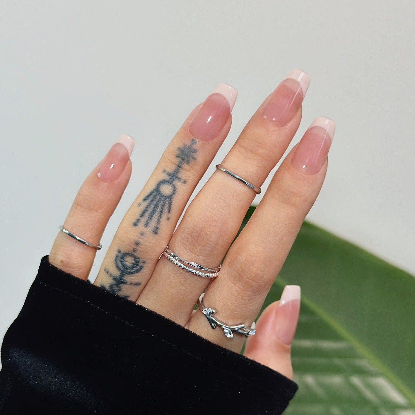 Each set has 10 pcs of Press-on nails and a Free application kit(Nail glue, Sticky tab, Nail file, and cuticle pusher). Within minutes- you'll have nails fit for a Queen!