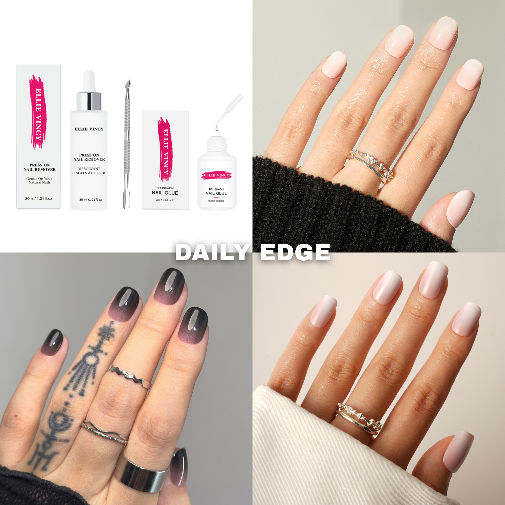 Simplicity meets attitude—Daily Edge brings you wearable, everyday nails with a hint of bold flair. These versatile designs pair seamlessly with your daily style, and the included strong-hold glue makes application quick and secure for all-day confidence.
