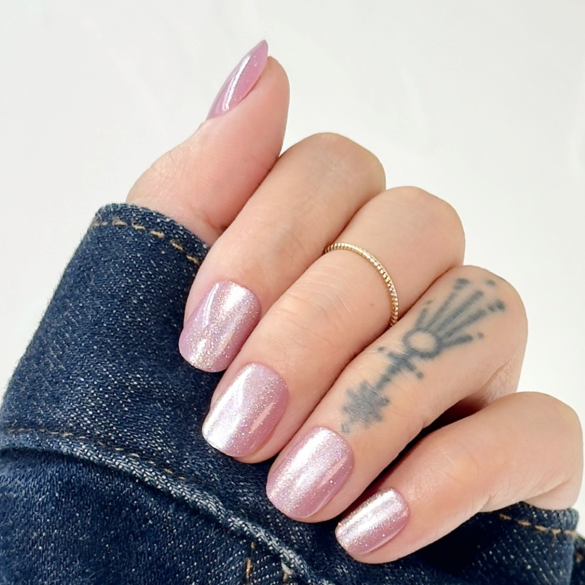 • ✨ Pink Glimmer: Fine glitter on a blush base that twinkles with every move.
