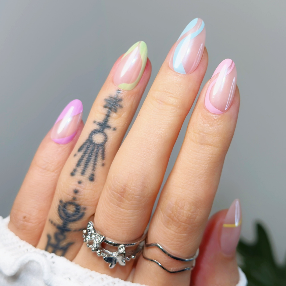 🌈 Swirl Fantasy: Multi-color pastel waves for a fun, artistic twist.