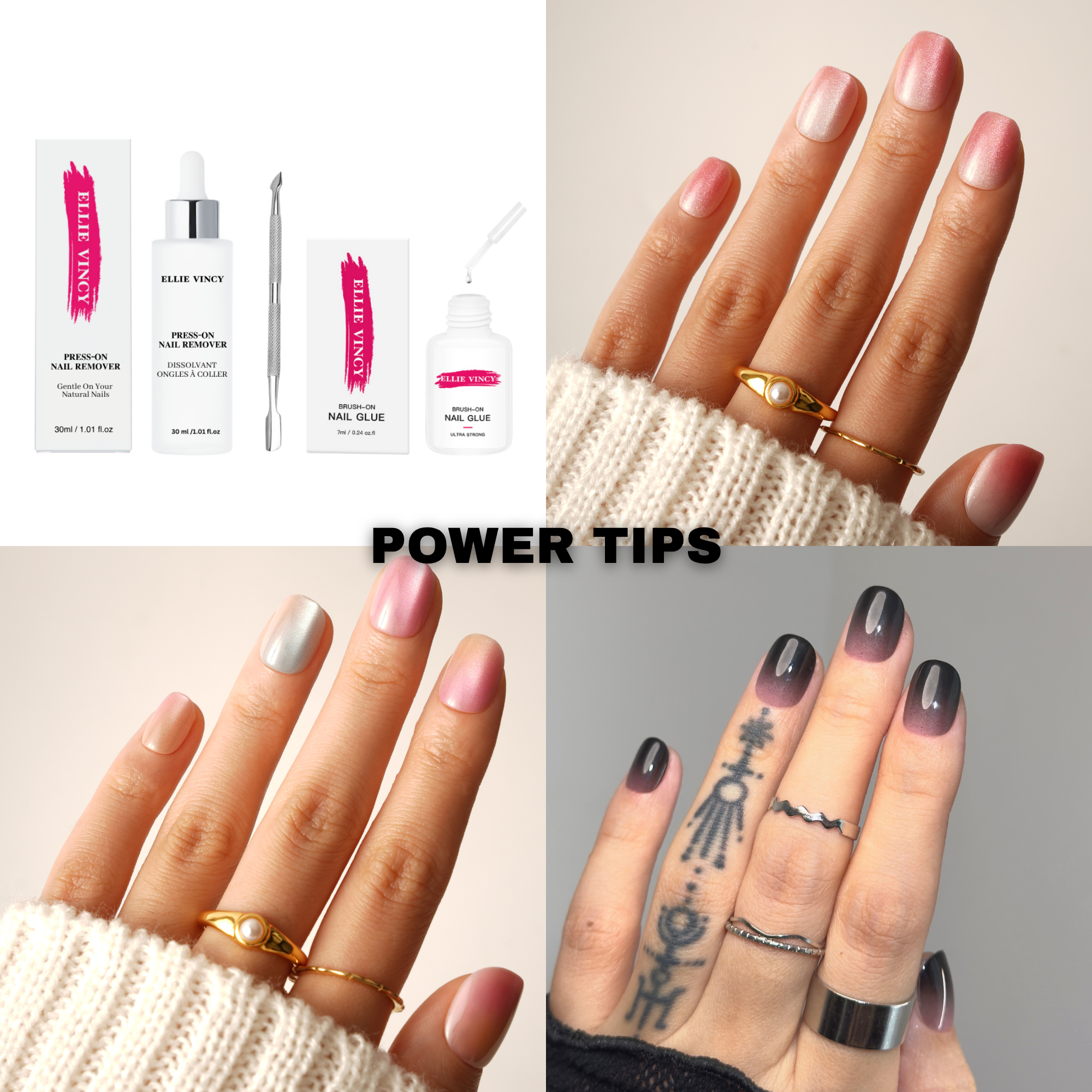 Bold, sleek, and confident โ€” this upgraded Power Tips kit includes 3 striking press-on nail designs that turn heads ๐Ÿ”ฅ. From sculpted shapes to modern patterns, each set is made to empower your every move ๐Ÿ’โ™€๏ธ.
