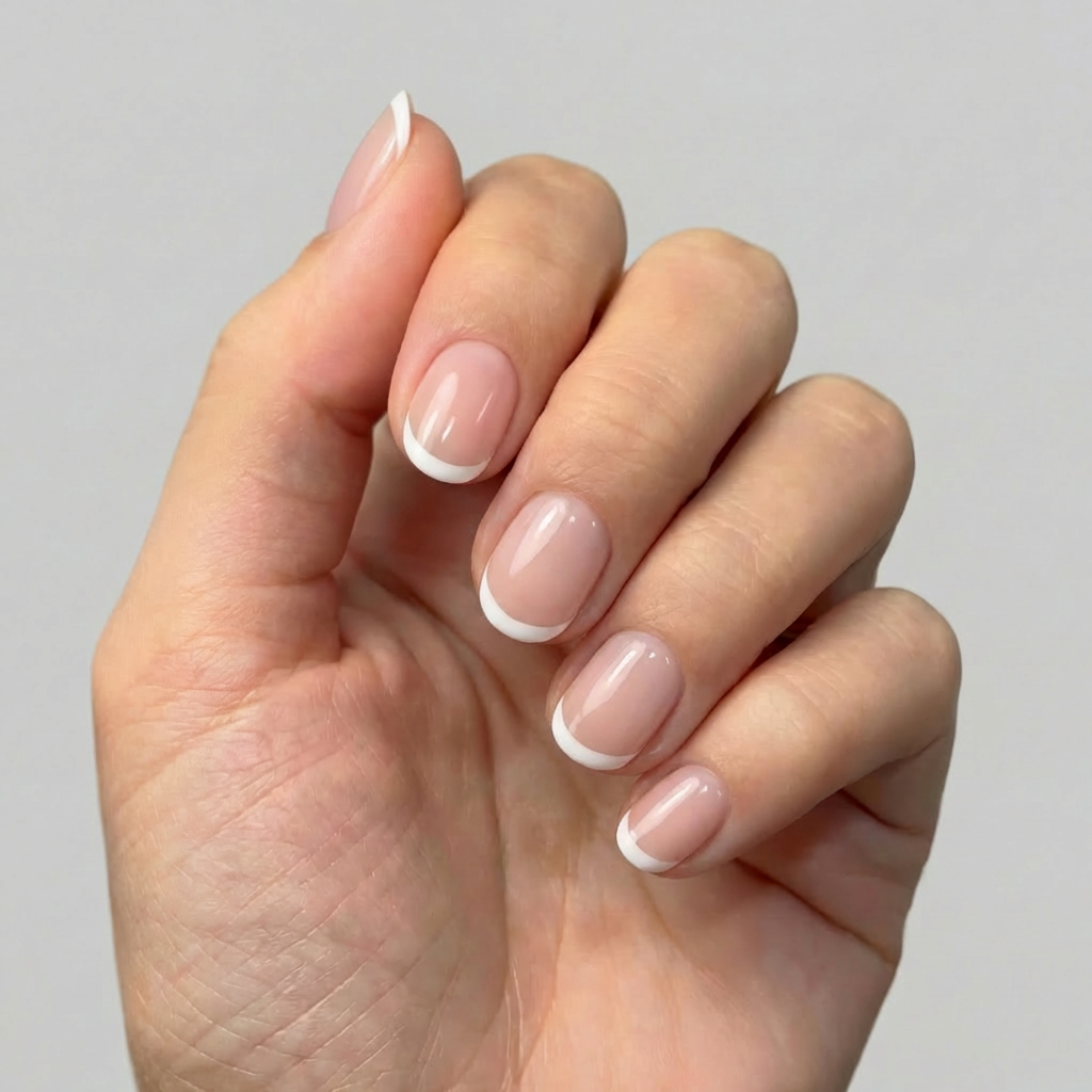 This soft nude manicure features a thin micro white French tip for that timeless “clean girl” aesthetic. With its short square round shape and high-gloss finish, this look is both subtle and sophisticated. Whether you’re in meetings or grabbing brunch, these nails bring fresh simplicity to every moment. 💅🏼