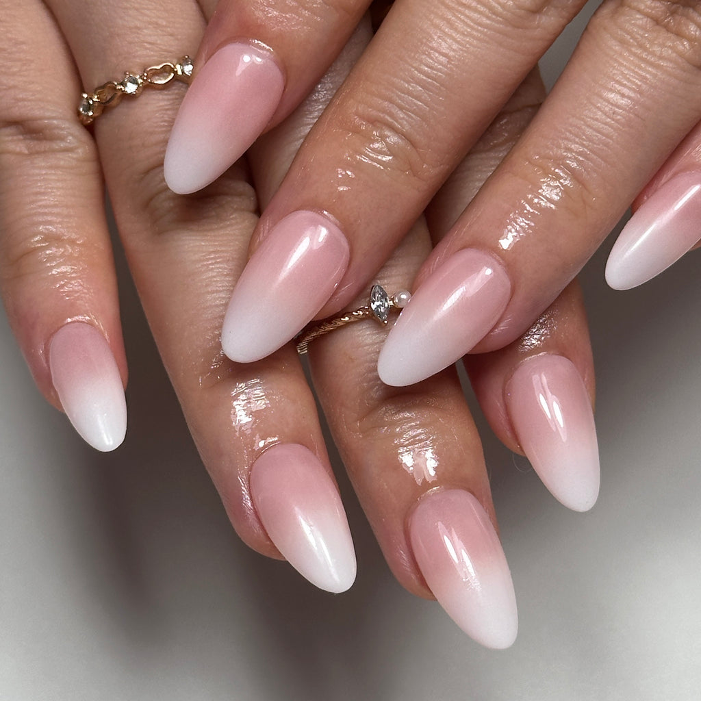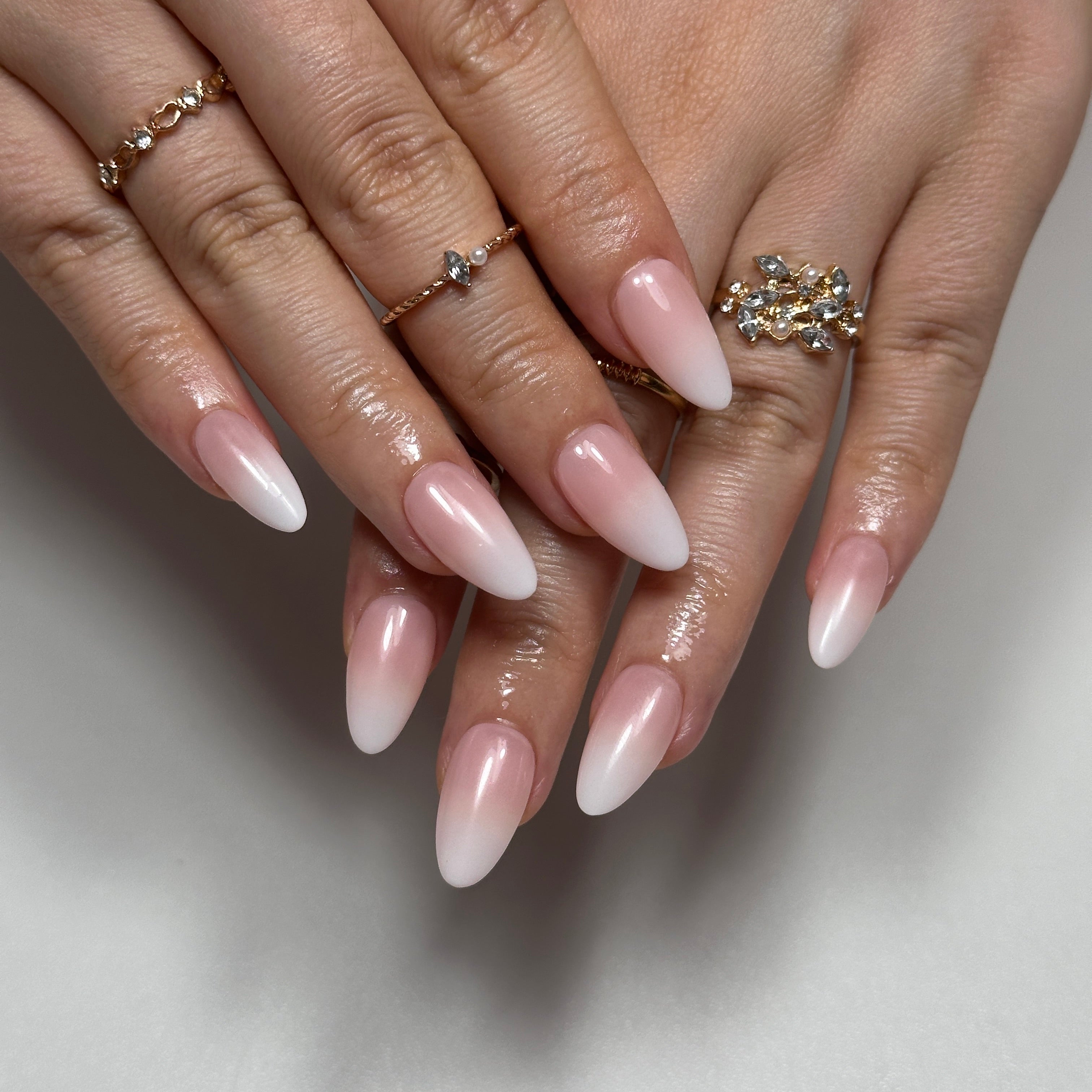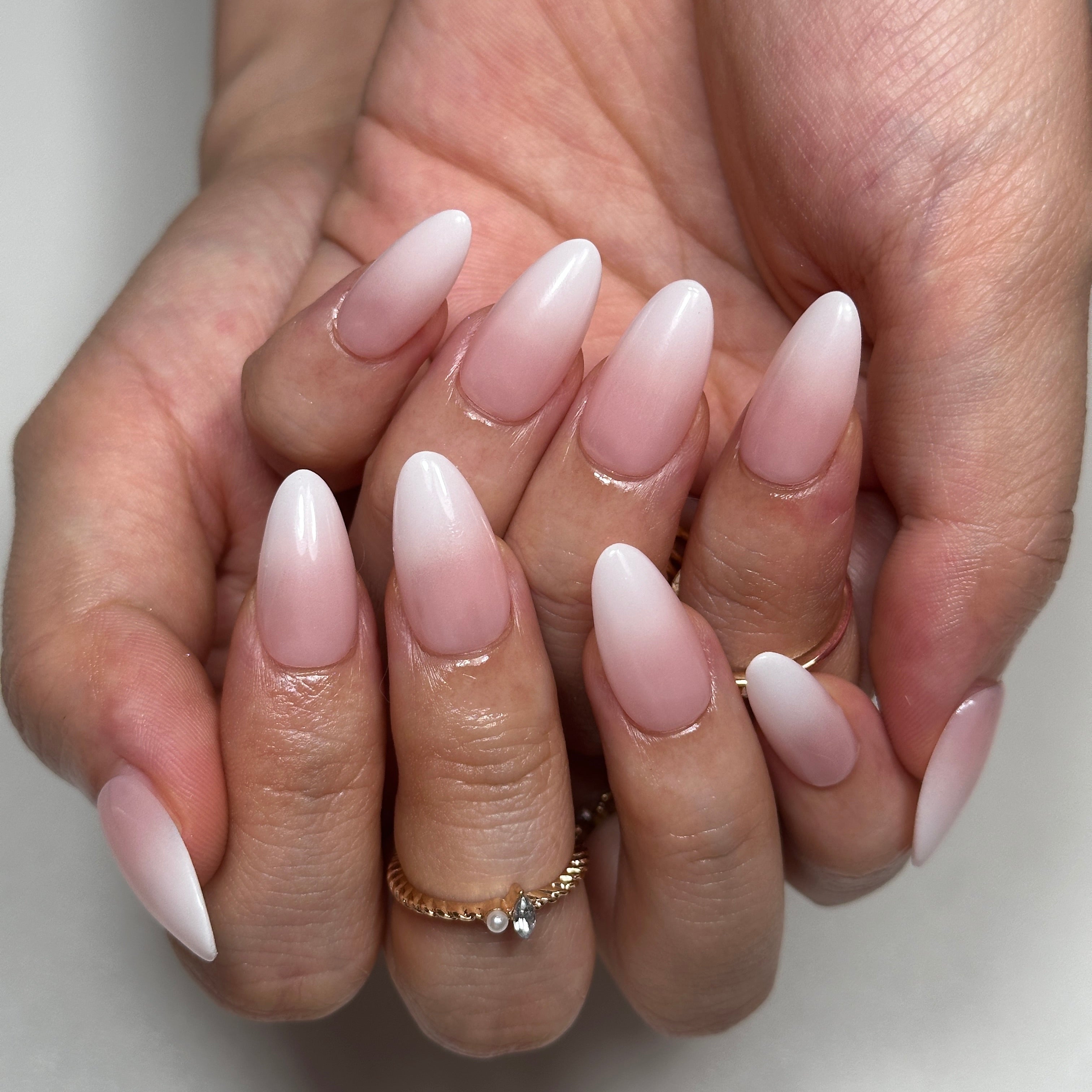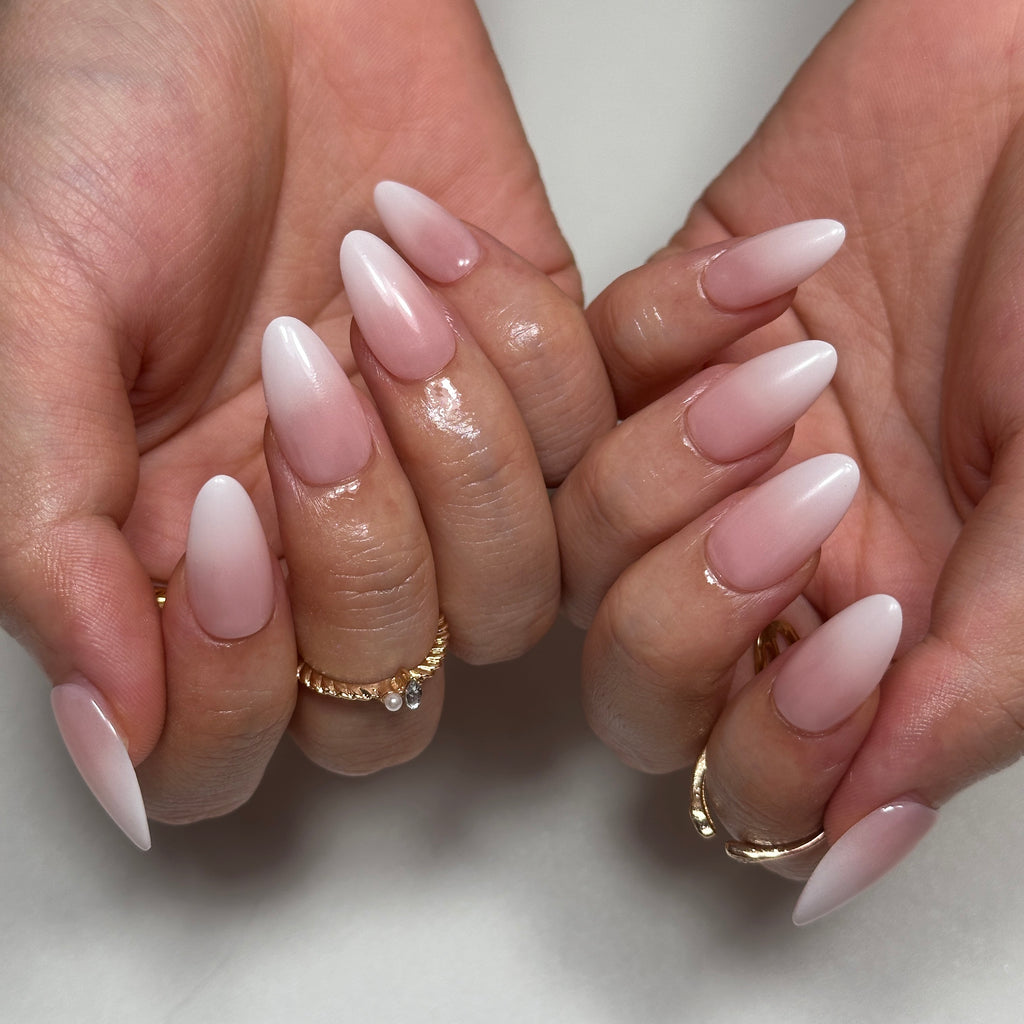 Blush Fade Short Almond Glue on Press on Handmade Nails