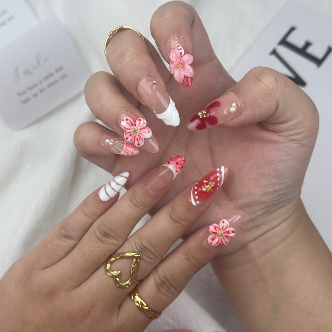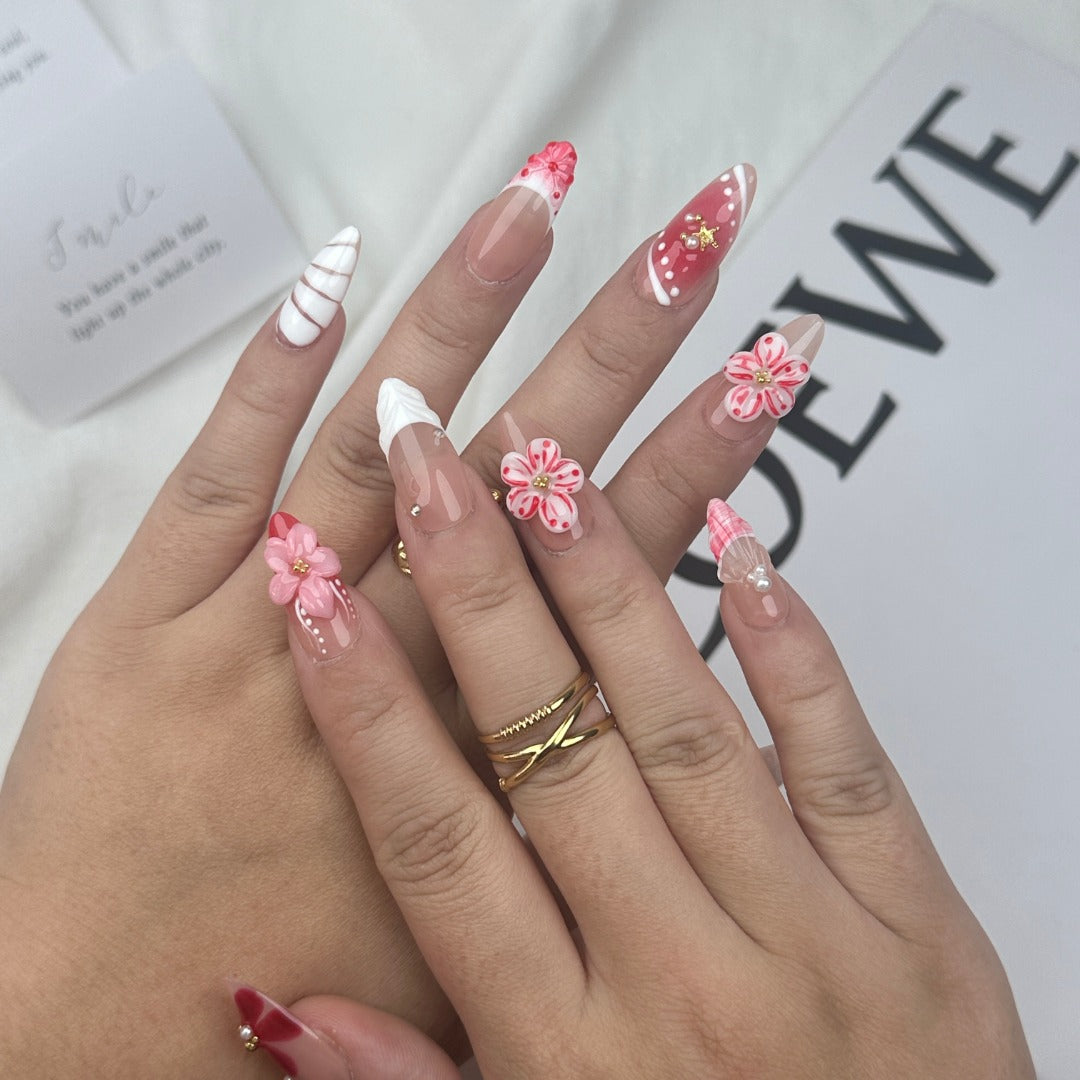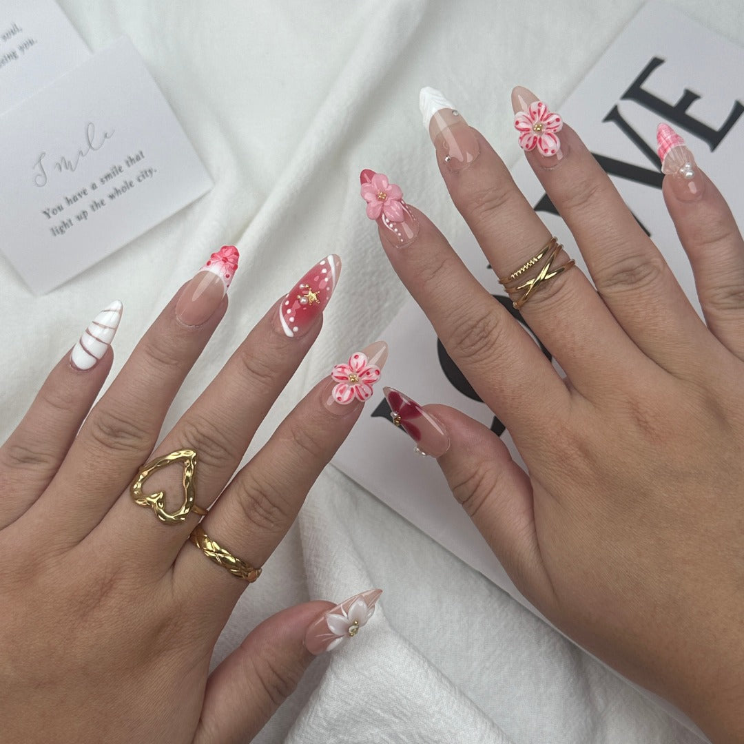 Each set has 10 pcs of Press-on nails and a Free application kit(Nail glue, Sticky tab, Nail file, and cuticle pusher). Within minutes- you'll have nails fit for a Queen!
