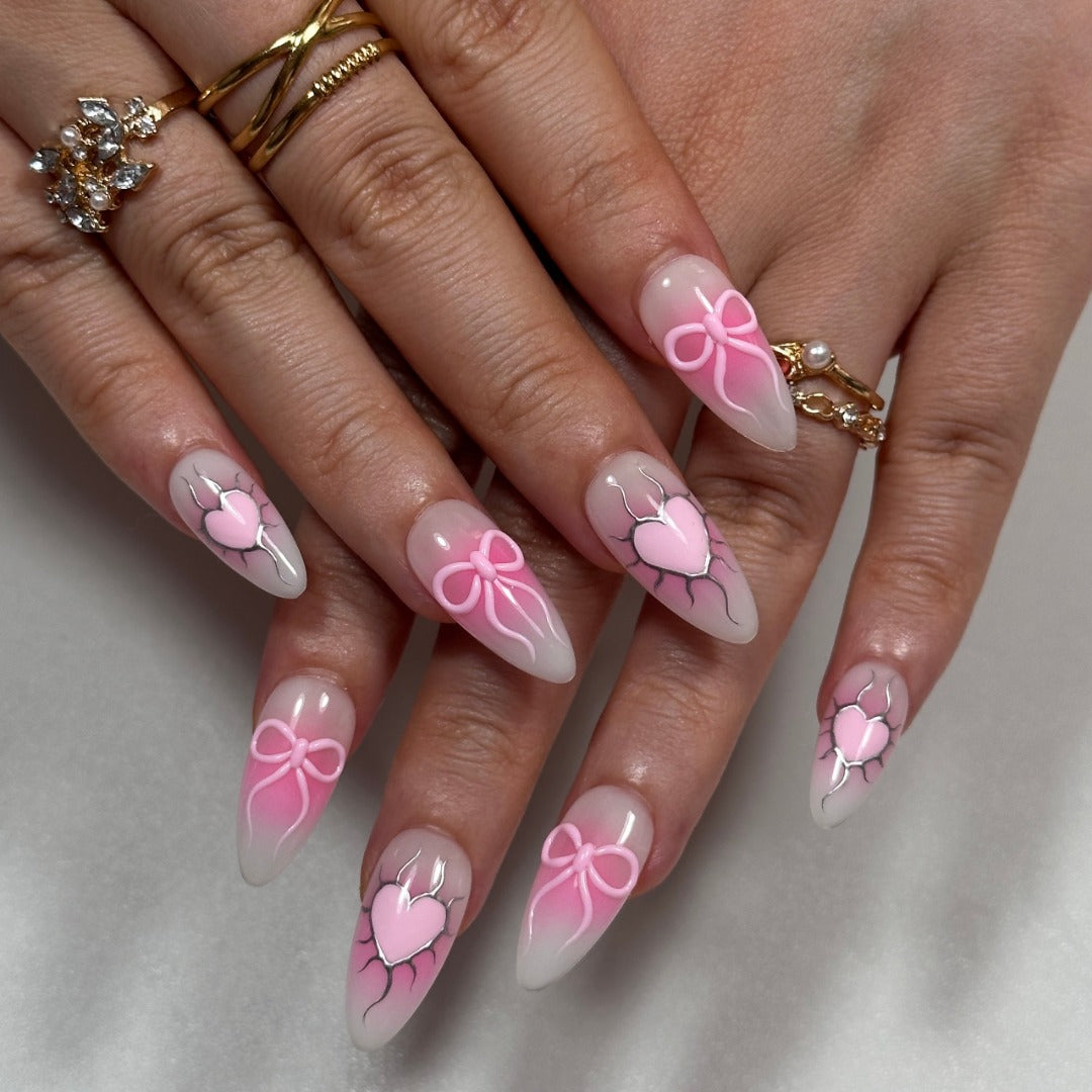 Each set has 10 pcs of Press-on nails and a Free application kit(Nail glue, Sticky tab, Nail file, and cuticle pusher). Within minutes- you'll have nails fit for a Queen!