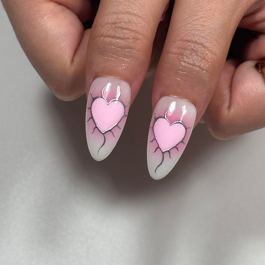 5. Press the Press-on Nail onto the sticky tad, starting from the cuticle and working towards the tip.