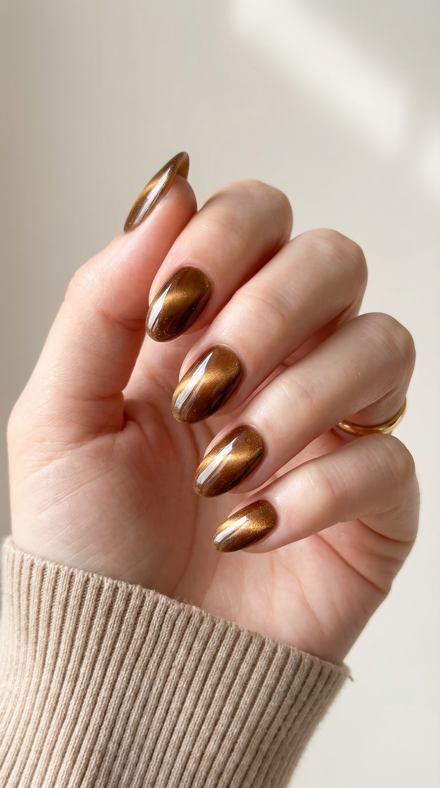 Molten Amber Short Almond Glue on Press On Nails