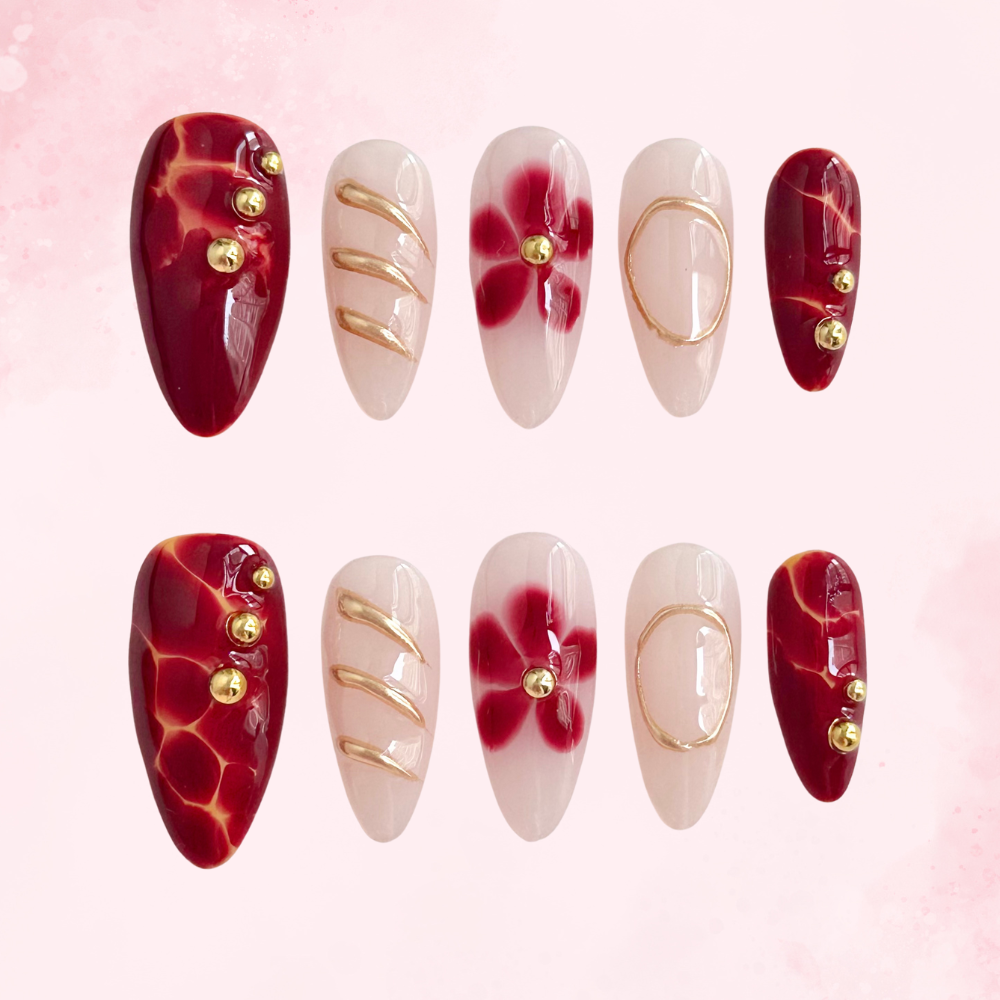 Each set has 10 pcs of Press-on nails and a Free application kit(Nail glue, Sticky tab, Nail file, and cuticle pusher). Within minutes- you'll have nails fit for a Queen!