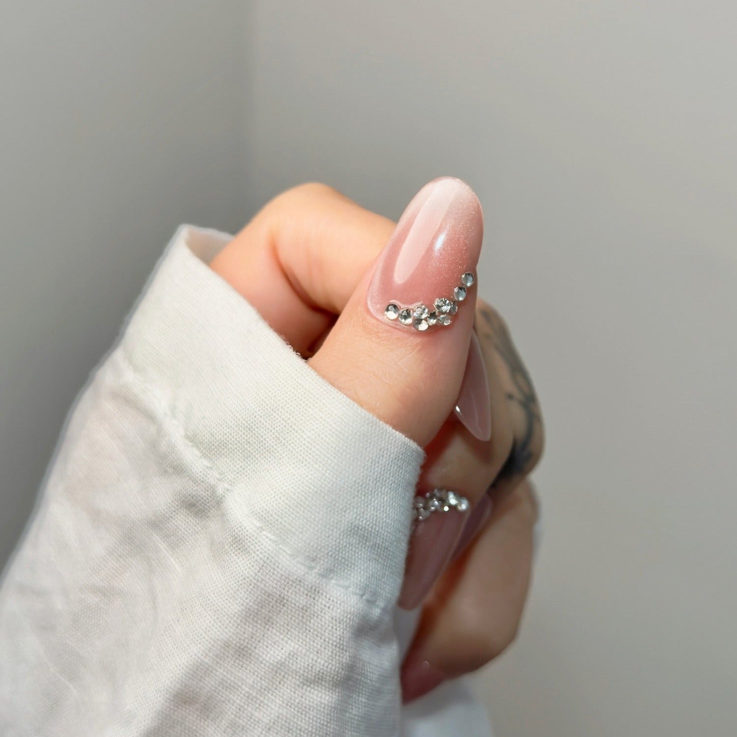 - Appuyez avec l'ongle à pression sur la partie collante, en commençant par la cuticule et en allant vers la pointe.
