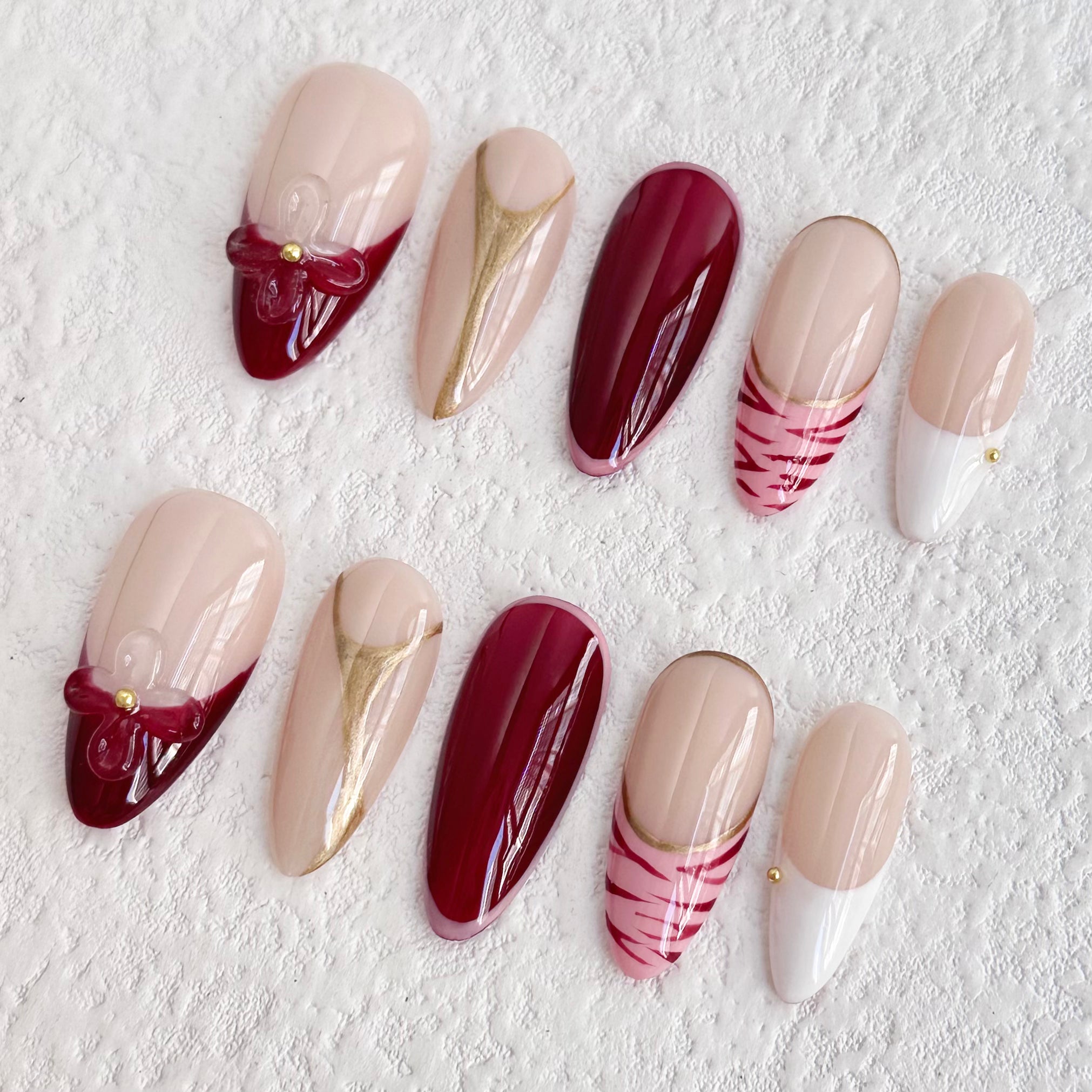 Schleife und Streifen | Handgemachte Nägel