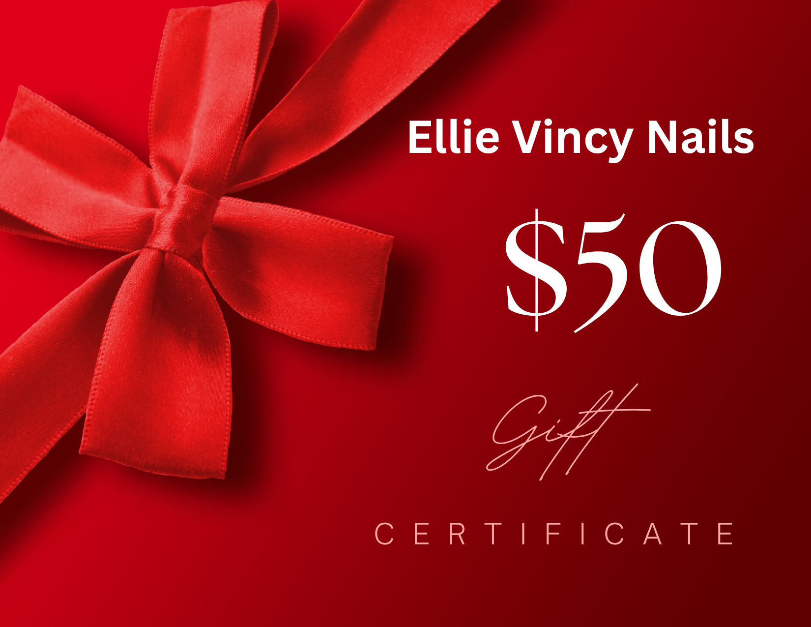 eine E-GESCHENKKARTE von Ellie Vincy Nails. Unsere digitalen Geschenkkarten verfallen nie, können für alle Artikel im Geschäft verwendet werden und es fallen keine zusätzlichen Bearbeitungsgebühren an.