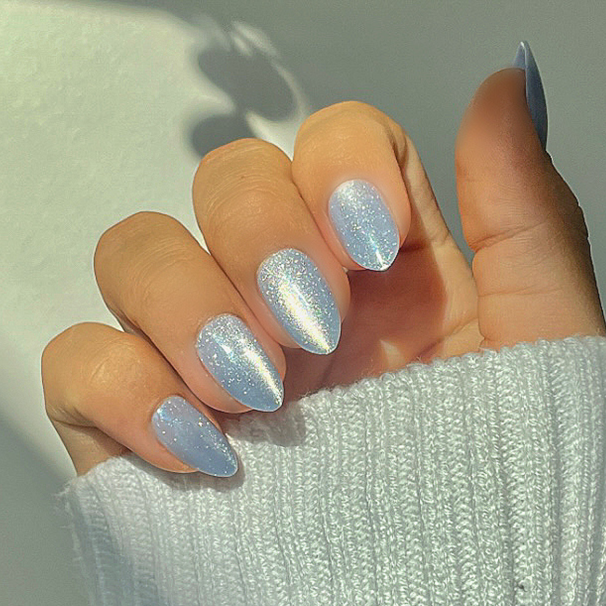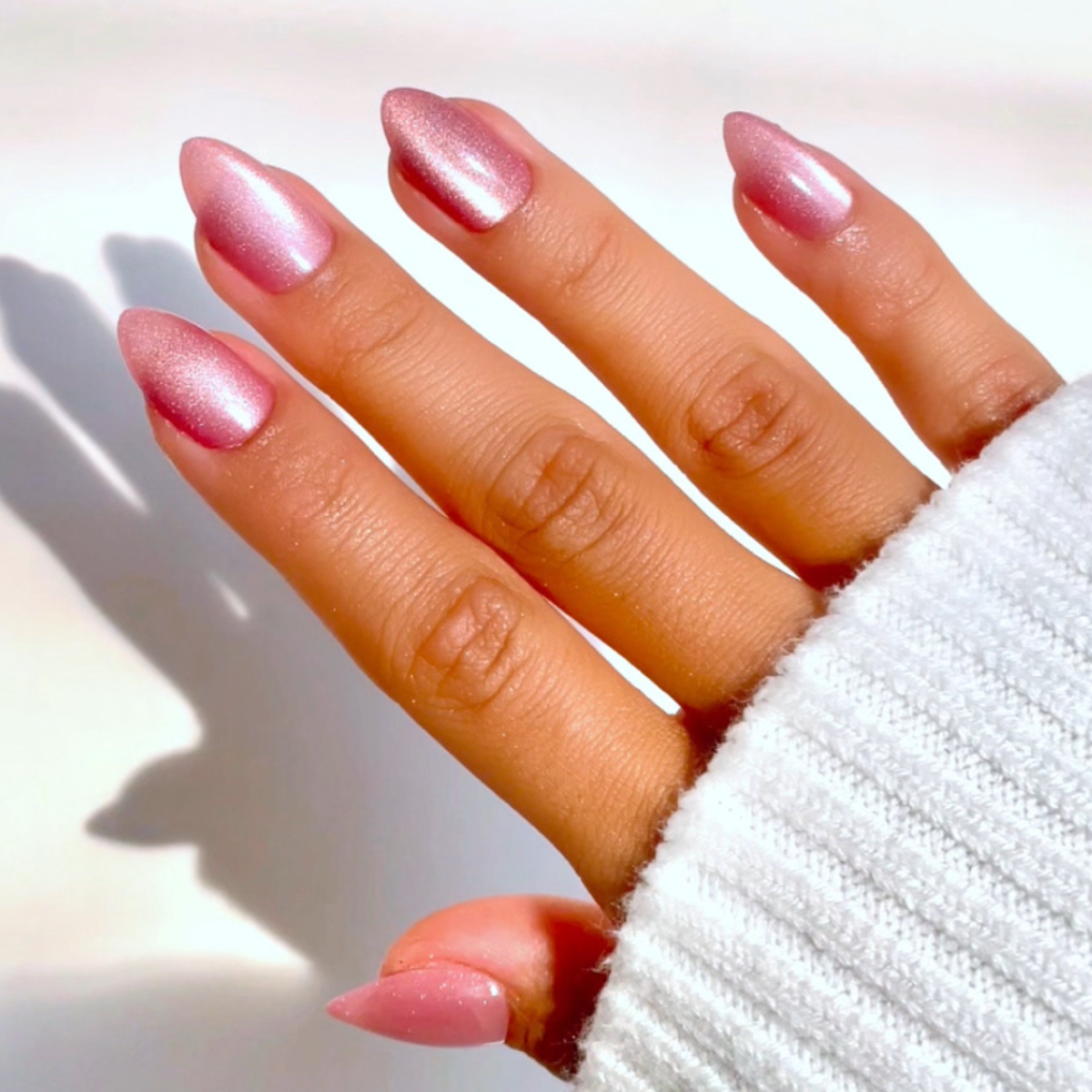 Eine traumhafte Mischung aus zartem Rosa und luftigem Blau – dieses Set fängt die Zartheit eines Zuckerwattehimmels ein. Mit Cat-Eye-Schimmer und zarten French Tips ist es Ihr Favorit für eine sanfte und doch strahlende Ausstrahlung.
